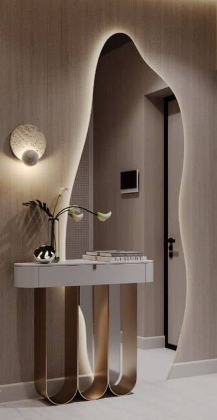 - مدخل مرايا متعرجة وكنسول مع اضاءة ليد